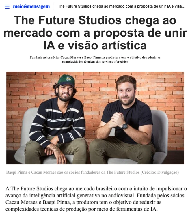 Com prêmios internacionais e produções inovadoras, a The Future Studios está à frente de um movimento que está redefinindo a forma como filmes e campanhas são criados. Agora, com a criação da The Future Academy, os sócios Baepi e Cacau terão a missão de compartilhar conhecimento, buscando construir e fortalecer uma comunidade de IA Filmmakers no Brasil.